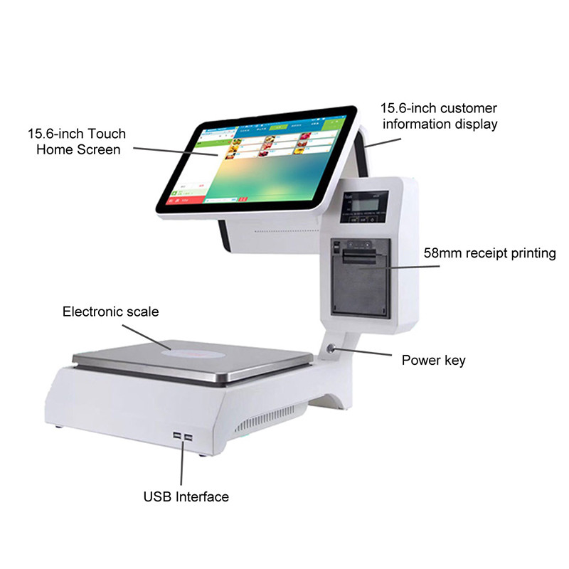 Casa > produtos > sistema da posição > Escala comercial digital de tela dupla de 15 kg com impressora de rótulos e resolução 1366*768